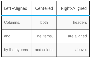 | Left-Aligned | Centered | Right-Aligned |